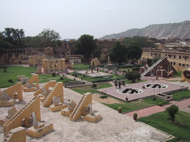 The Maharaja Jai Singh II is considered the "father" of Jaipur. He was also a passionate astronomer. He sent scholars abroad to study foreign observatories in order to build himself five observatories. The Jaipur observatory is the largest and best preserved. Each construction has a specific purpose, such as measuring the positions of the stars, altitudes, and calculating eclipses. There is a beautiful sundial that's 27 meters high and is very, very accurate. We had a great time looking around, but were too hot to stay for very long.