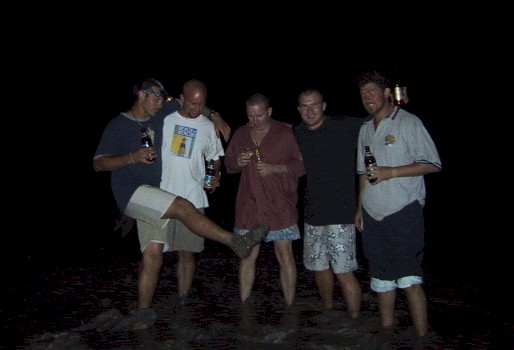 Jon and the Aussies in quicksand (note that you can't see their feet!)