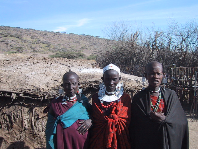 We left Ngorongoro and the environment changed as soon as we descended from our campsite. We're definitely heading toward the Serengeti during the dry season. The roads became dusty and dry, the green trees and leaves disappeared and were replaced by dry plains and an occasional tree. We stopped by a Maasai village to get some culture.