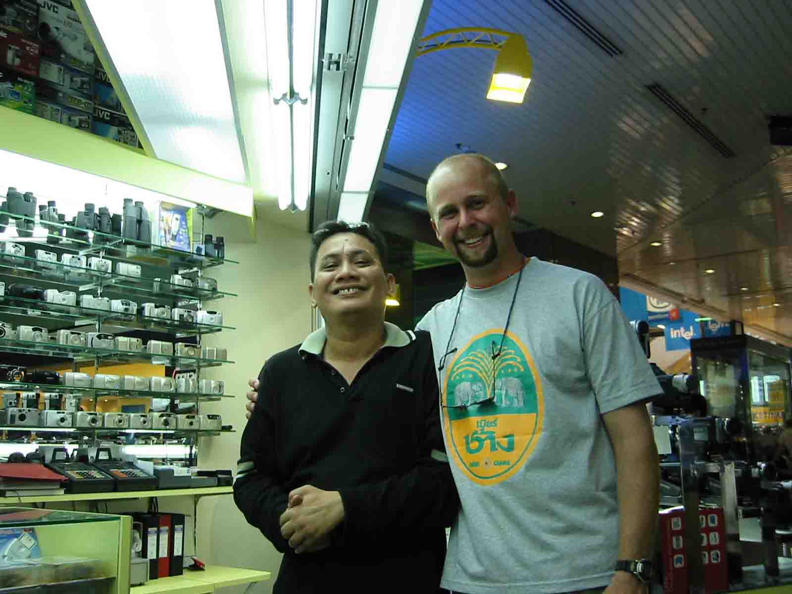 So we found a good deal in the Siam Lim center, and charged it. In the picture above is my man Sahid, who sold us the Camera. (His name isn't really Sahid, but we decided to name him that anyway). The camera is the newer version, has movie capabilities, and a microphone. The latter would have come in handy a few times on the trip - Buddhist prayers, Ken's Xi'an song, etc.