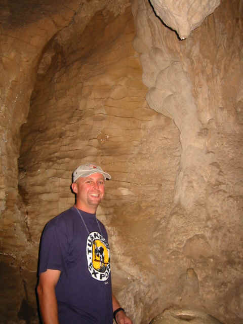 Jon and I bought tickets and waited for the guide to begin the tour. There were about 50 people in the tour, which included a walk through some large limestone caves and a boat-ride through the glowworm caves. The walk through the caves was lovely, and we learned all about stalagmites and stalactites. There was one beautiful area called "The Cathedral" that actually looked like it had a pipe organ and an angel.