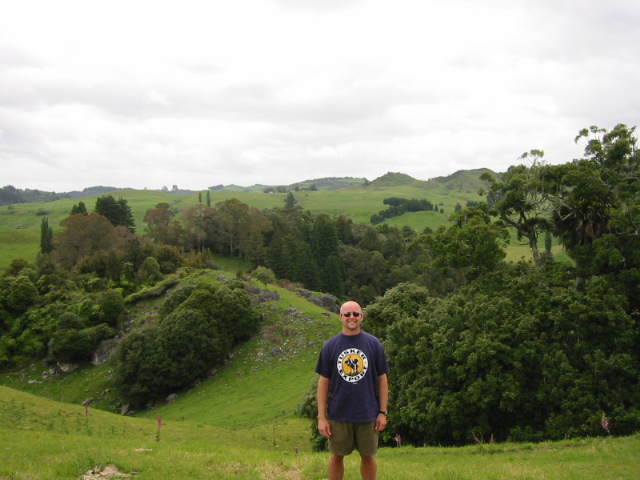 After lunch, we got into the car to hit the road. Not far from the glowworm cave, we passed a sign that said, "Adventure Trips: Lost World Excursion!". We pulled over and turned around. The Lost World is something we saw on the Discovery Channel last year and we both agreed then that we wanted to do. And we'd completely forgotten about it. But we were suddenly determined to do it, and gave up our plans to go to Rotorua today. Basically, The Lost World is a monstrous rappelling trip down a 330-foot gorge and then a hike back up the gorge again. We signed up for it and then consulted the camping guide to find a place to sleep. As we sat in the car and looked at the guide, I looked up from our parking place and said, "There's a campsite right across the street!". So we settled into the "Waitomo Top 10 Holiday Park" campsite. (www.waitomopark.co.nz)
