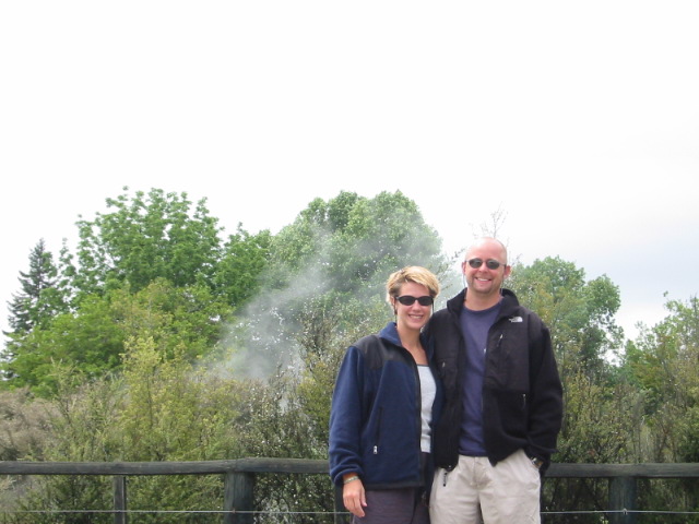 We spent a few hours walking around the thermals and then got back in the car to run some errands. We walked around town and wandered into a sports store and FINALLY found Jon an new pair of Tevas. He's been wearing his every day for 6 months and boy do they look like it. We've looked for Tevas for him since August, but the people in Asia just looked at his feet and laughed because no one carried his size. Thank God for a western country! We also found a tape adapter for the car, so now we can hook up the laptop and MP3 players to play music in the car until the batteries wear out. (Our car radio, by the way, only spans the frequencies from 88.0 - 90.0 for some reason, so we rarely get radio stations)