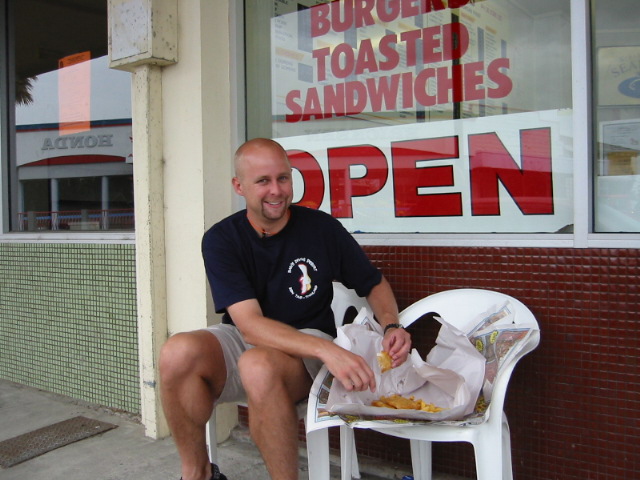 The drive was lovely, and as soon as we saw the first winery we pulled over to do a tasting. But I'll go into that detail in a bit. Before doing the bulk of our winery visits, we found the Snapper Campsite and set up our tent. Snapper is right on the beach. (Well, up a small hill and right on the beach) But it's a nice little place and the amenities are good. We got everything set up and put out our laundry to dry on the clothes lines. Then we went to a small fish-and-chips place down the road where we enjoyed some yummy fish and chips which was served to us in newspaper.