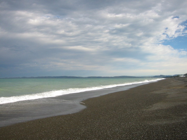 After we were all wined out we decided to drive around Napier. Despite the morning and afternoon rains, the evening turned out quite nice. The town of Napier is known for its art deco architecture. The entire town was leveled in 1931 by a massive earthquake, and it was rebuilt in the style of the 30s and 40s. The city has tried to maintain that tradition, although most of the best architecture is in the "pedestrian mall". We walked out to the beach and shivered a bit, but still enjoyed the little rocks on the beach. No sand, just rocks.