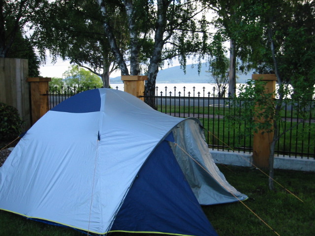 We arrived in Te Anau around 3:30ish. The sun had come out and the lake was beautiful, so we were in a cheery mood. We found the campsite with no problems - the Te Anau Mountain View Holiday Park is a 5-Star campground, and has won multiple awards from the New Zealand Tourist Association. This place is the Waldorf of campsites. And it was packed, too. There were only a few tent sites left when we arrived, but we ended up with a lovely sight at the end with a view of Lake Te Anau.