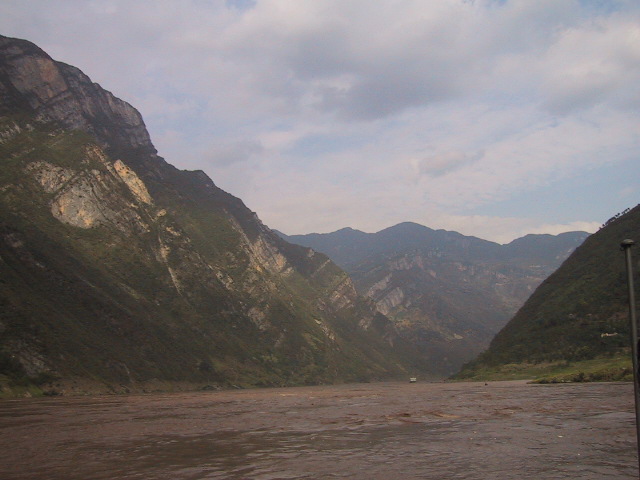 Xiling Xia, at 80 km, is the longest of the three gorges. It was quite dark when we passed through it, so we didn't get to enjoy it as much as the other and photos were pretty impossible. Because it was getting cold, I stood in Ivy and Ted's cabin and looked through their picturesque window to see the gorge pass by.