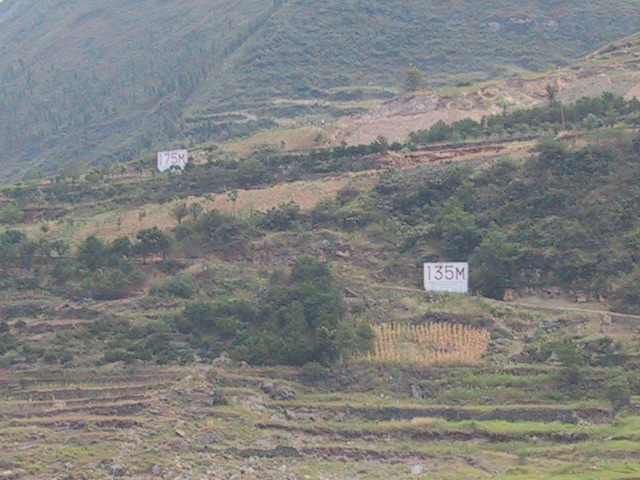 Signs marking the water levels of the dam - 135 meters and 175 meters
